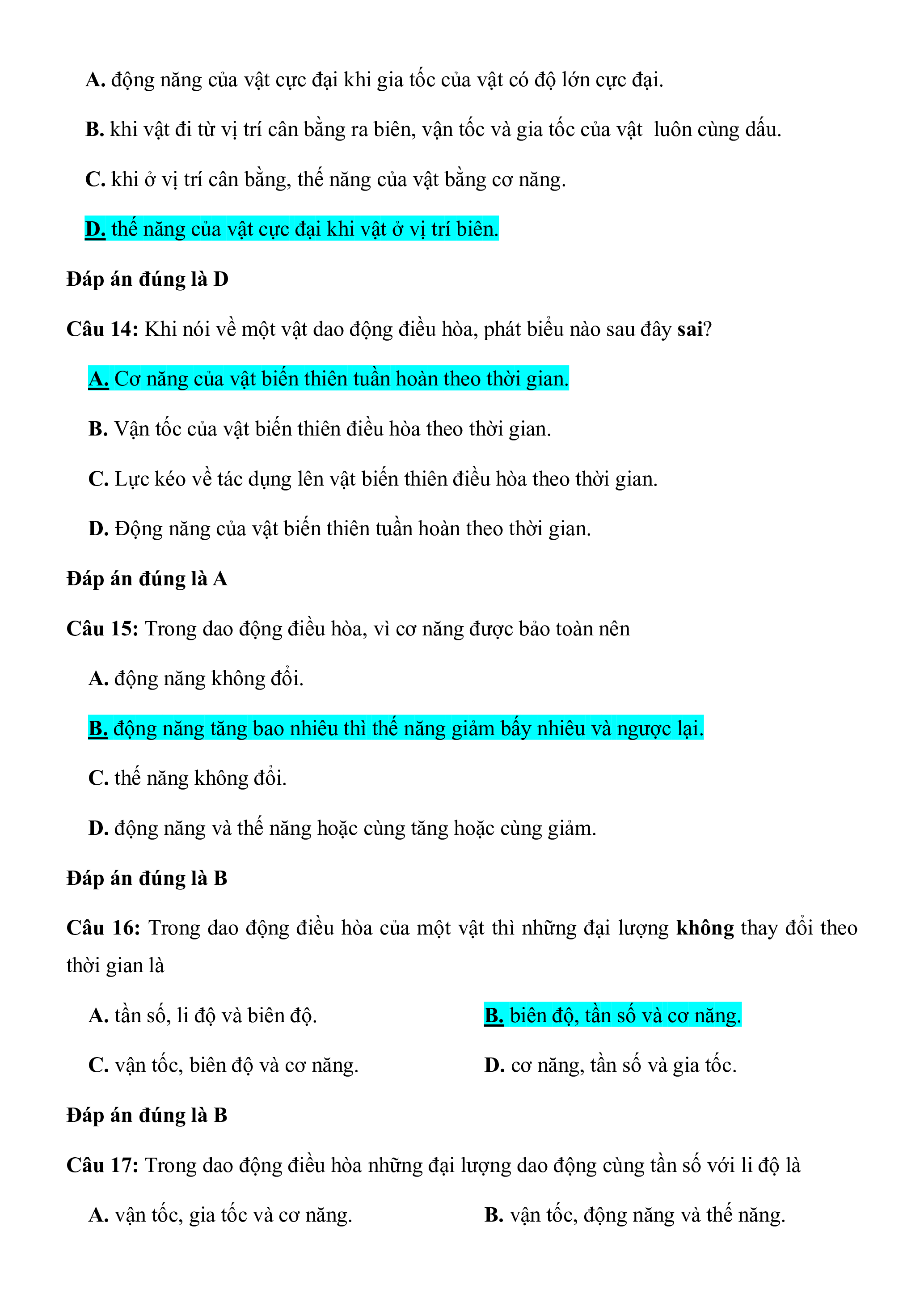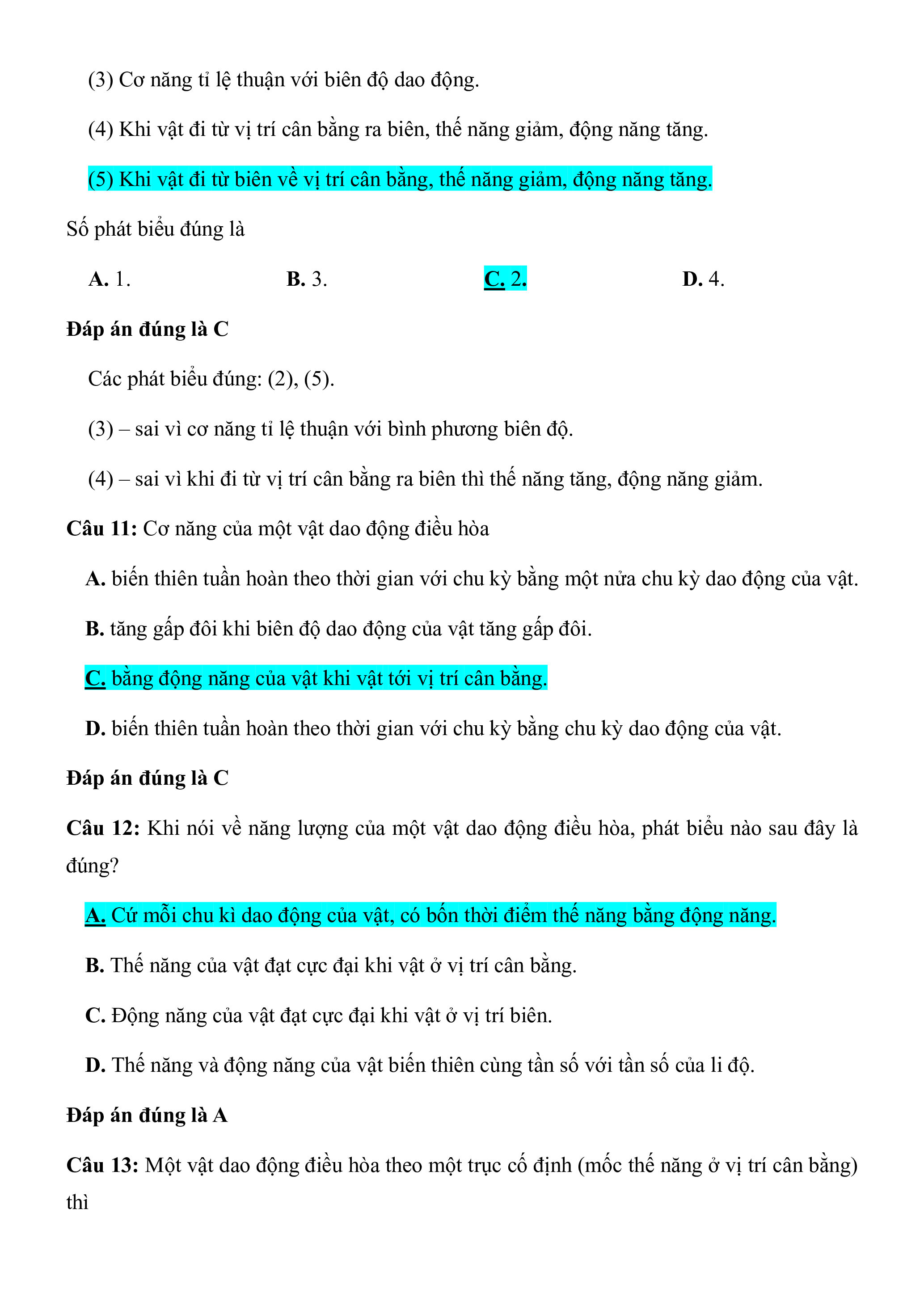 Câu 12: Khi nói về năng lượng của một vật dao động điều hòa, phát biểu nào sau đây là đúng?