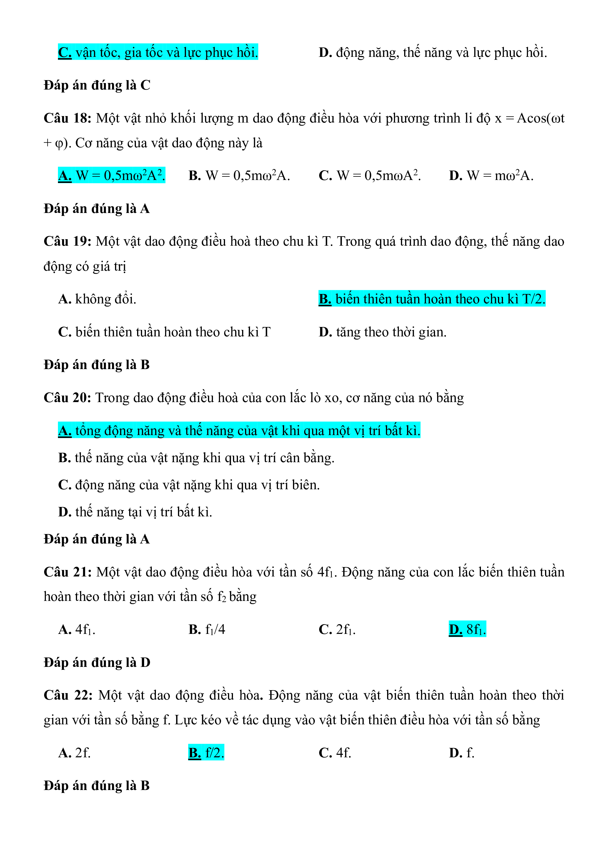 Câu 17: Trong dao động điều hòa những đại lượng dao động cùng tần số với li độ là
