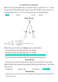 g 10 m/s . Góc lệch của dây so với phương thẳng là A. 14o. B. 30o. C. 45o. D. 60o. Hướng dẫn giải 2 7 2 9 5.10 q 9.10 . k 2 F 0,6 d r tan 0,25 14 P mg 0,0025.10