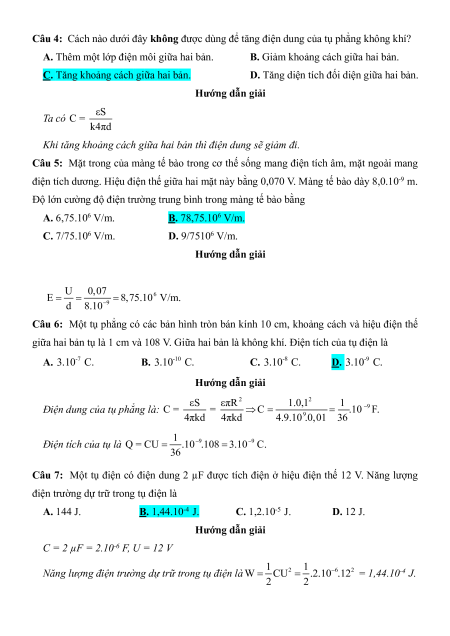 Câu 6: Một tụ phẳng có các bản hình tròn bán kính 10 cm, khoảng cách và hiệu điện thế