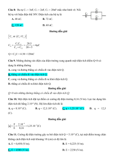 bộ tụ với hiệu điện thế 30V. Điện tích của bộ tụ là A. 48 nC. B. 72 nC. C. 120 nC. D. 60 nC. Hướng dẫn giải C nt C //C 3 1 2 C C 20.5 3 12 C 4 C b C C 20 5 3 12 Q C U 4.30 120nC b