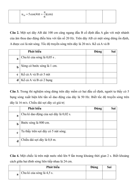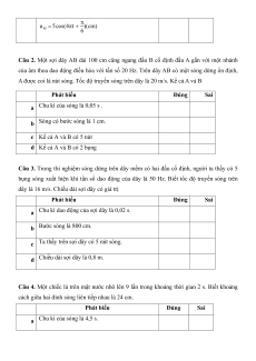 dây là 16 m/s. Chiều dài sợi dây có giá trị Phát biểu Đúng Sai