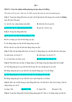 Câu 15: Một con lắc đơn có khối lượng m = 10 kg và chiều dài dây treo l = 2 m. Góc lệch