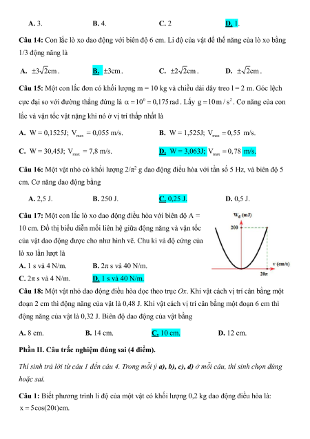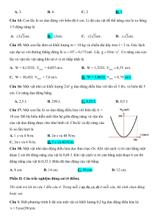 Câu 14: Con lắc lò xo dao động với biên độ 6 cm. Li độ của vật để thế năng của lò xo bằng 1/3 động năng là A. 3 2cm . B. 3 cm . C. 2 2cm . D. 2cm .