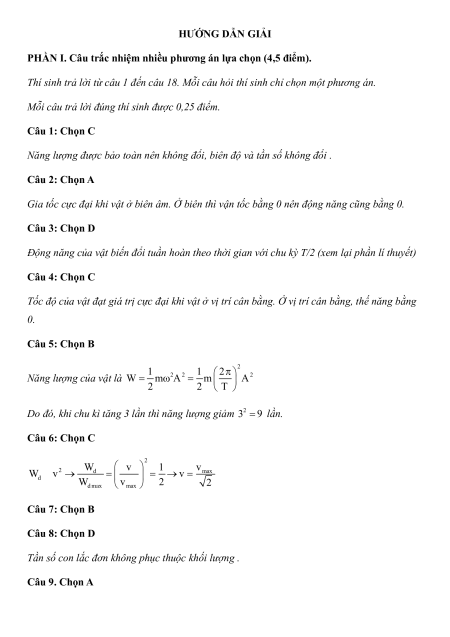 Câu 5: Một vật có khối lượng m dao động điều hòa với biên độ A. Khi chu kì tăng 3 lần thì