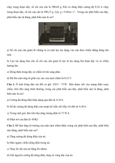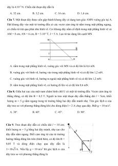 Câu 5. Một đoạn dây dẫn dài 10 cm đặt trong từ trường đều và vuông góc với vectơ cảm ứng