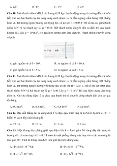 Câu 6. Một đoạn dây dài đặt trong từ trường đều có cảm ứng từ B = 0,5 T hợp với đường