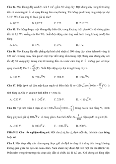 Câu 15. Từ thông Φ qua một khung dây biến đổi, trong khoảng thời gian 0,2 s từ thông giảm