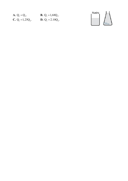 tăng nhiệt độ của nước và rượu bằng nhau thì: A. Q Q . B. Q 1,68Q . 1 2 1 2 C. Q 1,25Q . D. Q 2.10Q . 1 2 1 2 Nước