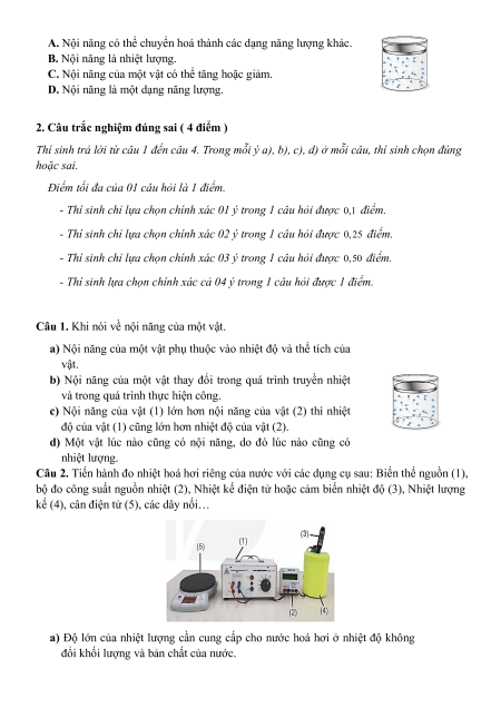 - Thí sinh lựa chọn chính xác cả 04 ý trong 1 câu hỏi được 1 điểm.