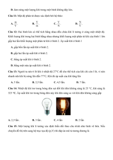 Câu 12: Hai bình kín có thể tích bằng nhau đều chứa khí lí tưởng ở cùng một nhiệt độ.