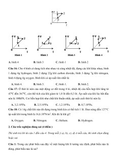 Câu 16: Cho 4 bình có dung tích như nhau và cùng nhiệt độ, đựng các khí khác nhau, bình