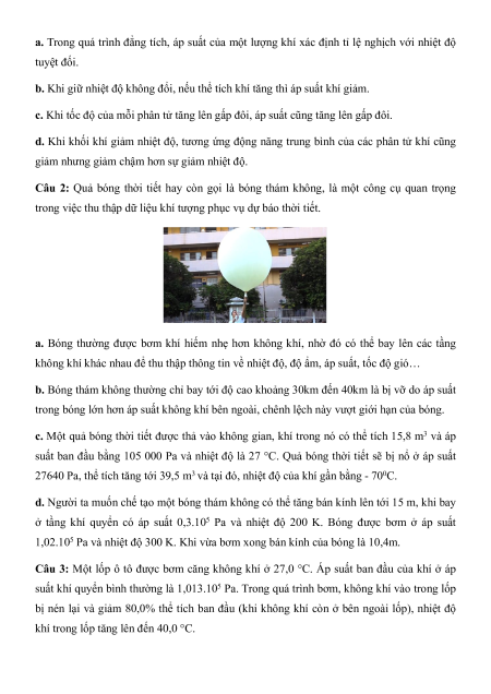 Câu 1: Cả 3 thông số trạng thái của 1 lượng khí xác định đều thay đổi ở trong hiện tượng