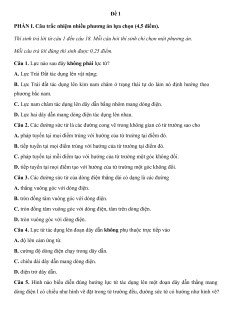 PHẦN I. Câu trắc nhiệm nhiều phương án lựa chọn (4,5 điểm).
