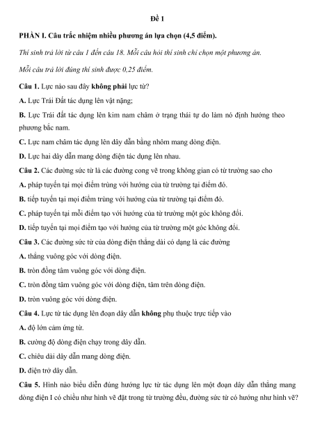 Câu 2. Các đường sức từ là các đường cong vẽ trong không gian có từ trường sao cho