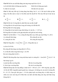 Câu 15. Một dòng điện chạy trong một đoạn mạch có cường độ i = 4cos(2πft + )(A) (f > 0). 2 Đại lượng f gọi là