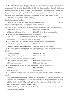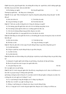 Câu 18. Biểu nào dưới đay thể hiện lòng yêu thương con người? A. Thù hận.