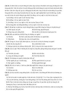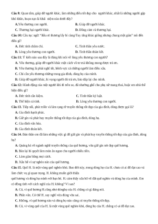 Câu 18. Biểu nào dưới đay thể hiện lòng yêu thương con người? A. Thù hận.