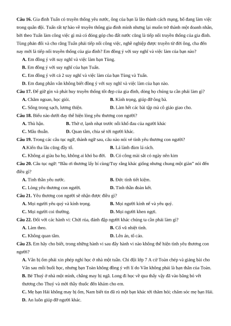 Câu 16. Gia đình Tuấn có truyền thống yêu nước, ông của bạn là lão thành cách mạng, bố đang làm việc