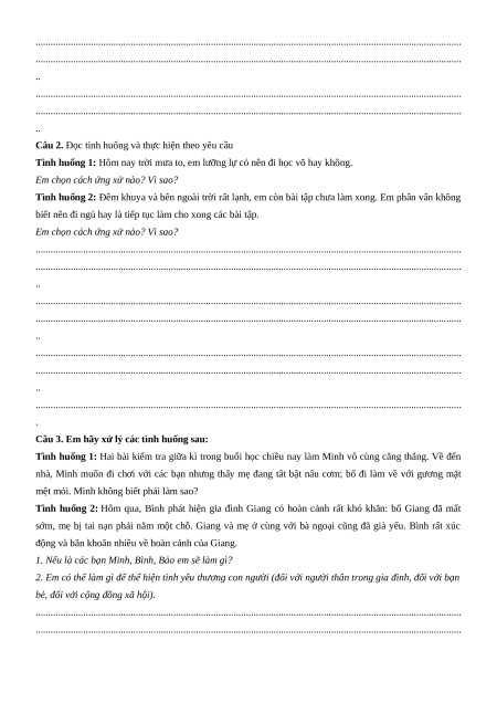 BÀI TẬP ÔN TẬP GIỮA KÌ 1 BỘ KNTT MÔN: GDCD – LỚP: 6