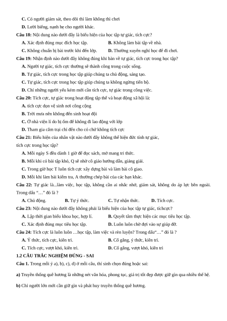 Câu 19: Nhận định nào dưới đây không đúng khi bàn về tự giác, tích cực trong học tập?