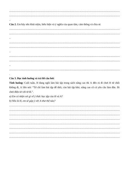 Câu 13: Để cảm thông, quan tâm, chia sẻ với người khác mỗi chúng ta không nên làm điều gì sau đây?