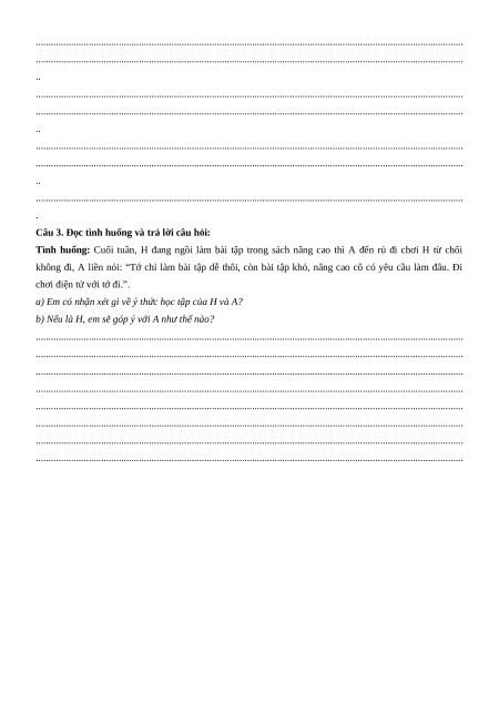 Câu 23: Nội dung nào dưới đây không phải là biểu hiện của học tập tự giác, tíchcực?