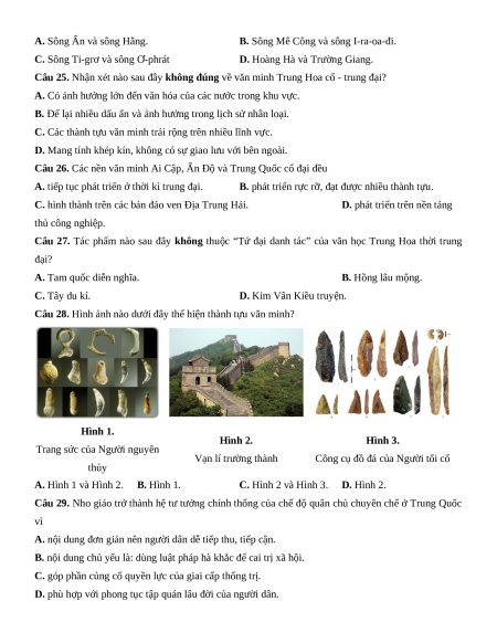 Câu 24. Nền văn minh Ấn Độ cổ đại hình thành và phát triển gắn liền với những dòng sông nào?
