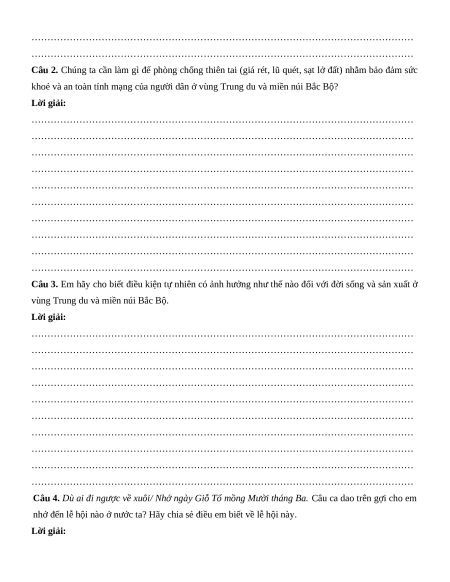 Câu 6. Trung du và miền núi Bắc Bộ là vùng lãnh thổ nằm ở phía nào của nước ta? A. Phía bắc. B. Phía nam. C. Phía đông. D. Phía tây.
