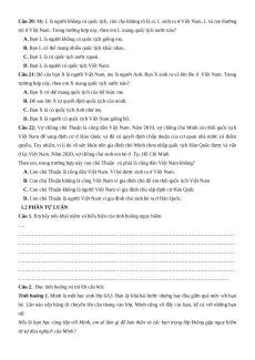 Câu 22: Vợ chồng chú Thuận là công dân Việt Nam. Năm 2019, vợ chồng chú Minh xin thôi quốc tịch