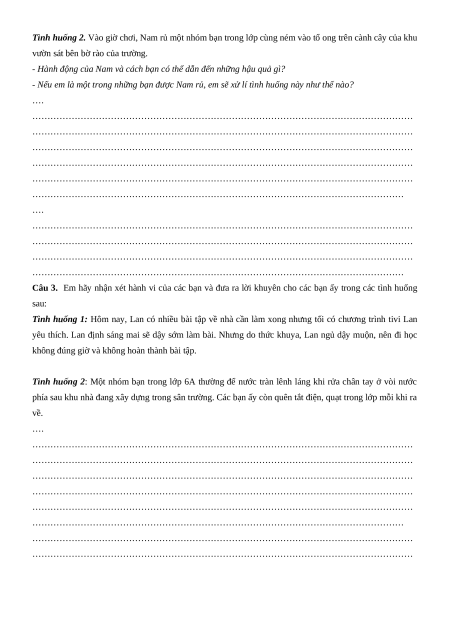 Tình huống 1. Minh là một học sinh lớp 6A3. Bạn ấy khá hài hước nhưng hay đùa giỡn quá mức với bạn