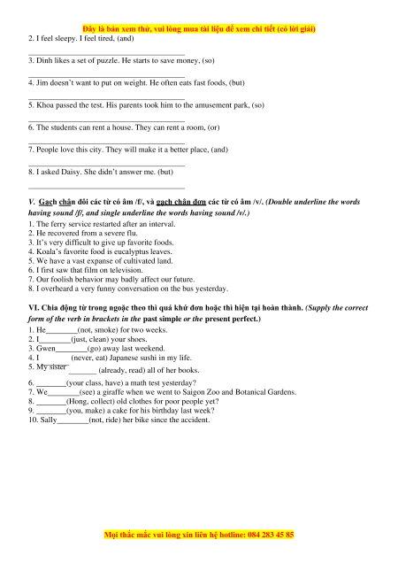 VI. Chia động từ trong ngoặc theo thì quá khứ đơn hoặc thì hiện tại hoàn thành. (Supply the correct