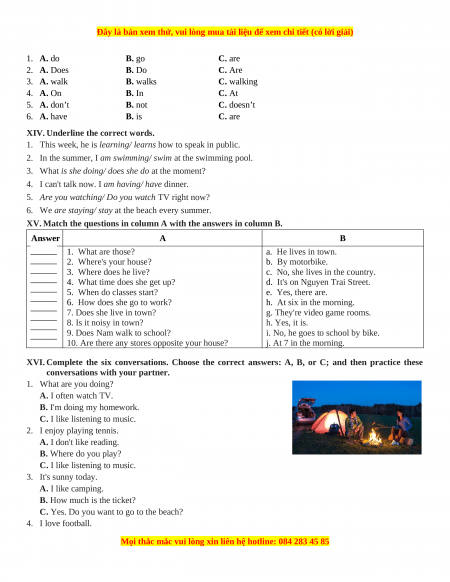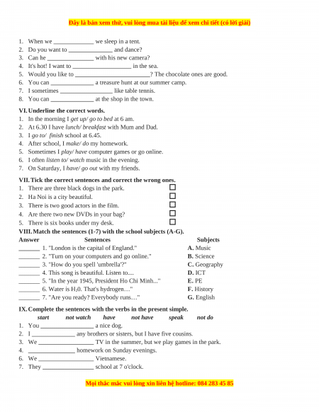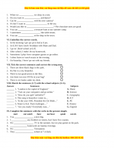 TV in the summer, but we play games in the park. 4. homework on Sunday evenings. 6. We Vietnamese. 7. They school at 7 o'clock.