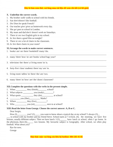 XII. Complete the questions with the verbs in the present simple. 1. When they (finish) school? 2. What subjects you (study) ? 3. What sports they (do) at school? 4. you (like) Maths? 5. Where they (live) ? 5. Who you (sit) next to at school?