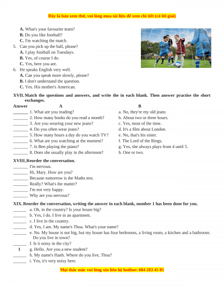 XVII. Match the questions and answers, and write the in each blank. Then answer practise the short