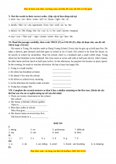 In the evening, he reads or watches television. He has a busy but happy life. 1. Trung is a math teacher. ________________
