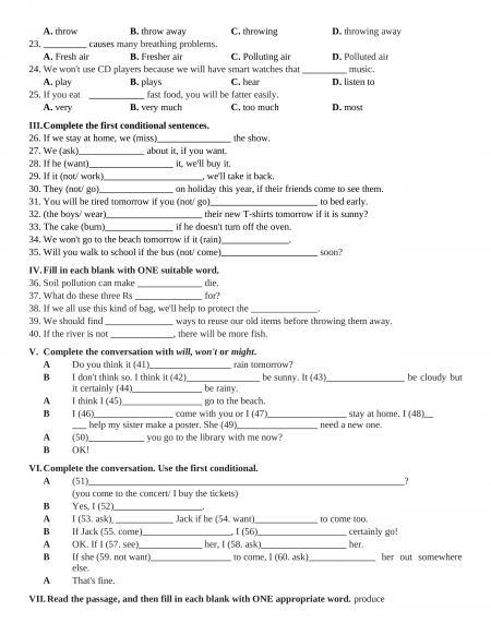 I don't think so. I think it (42) be sunny. It (43) be cloudy but it certainly (44) be rainy. A I think I (45) go to the beach. B I (46) come with you or I (47) stay at home. I (48)
