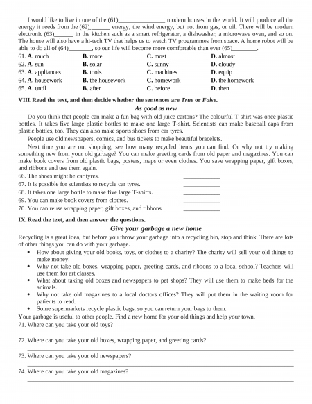 VIII. Read the text, and then decide whether the sentences are True or False. As good as new