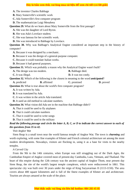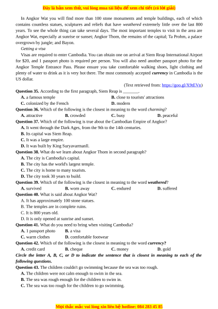 the questions from 35 to 42. Visit Angkor Wat