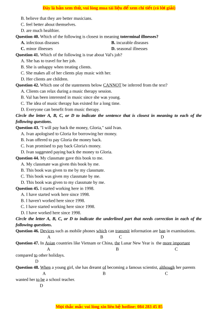 Question 40. Which of the following is closest in meaning toterminal illnesses?