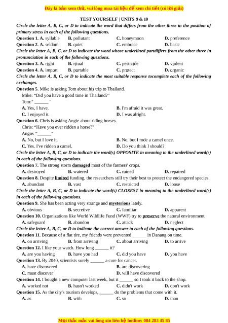 Question 1. A. syllable B. pollutant C. honeymoon D. preference