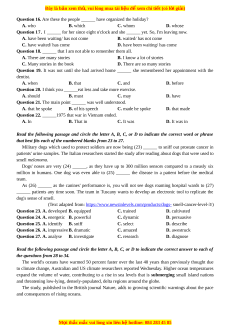 Question 22. ______1975 that war in Vietnam ended. A. In B. That in C. It was D. It was in