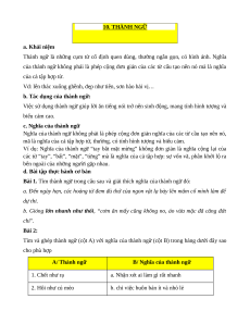 Tìm và ghép thành ngữ (cột A) với nghĩa của thành ngữ (cột B) trong bảng dưới đây sao cho phù hợp A/ Thành ngữ