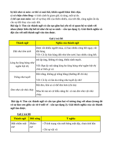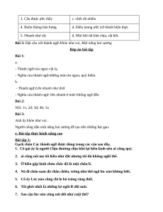 Bài 3: Đặt câu với thành ngữ Khỏe như voi, Một nắng hai sương Đáp án bài tập Bài 1: a.