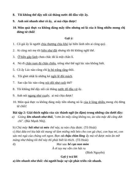 Bài tập Thành ngữ lớp 7 (có đáp án)