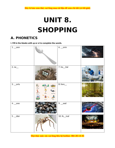 UNIT 8. SHOPPING A. PHONETICS
