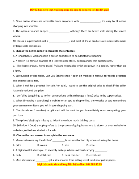 Đây là bản xem thử, vui lòng mua tài liệu để xem chi tiết (có lời giải)