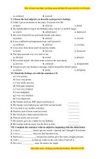 IX. Fill in each blank with the correct adjective. embarrassed excited surprised relaxed afraid interested worried bored angry nervous