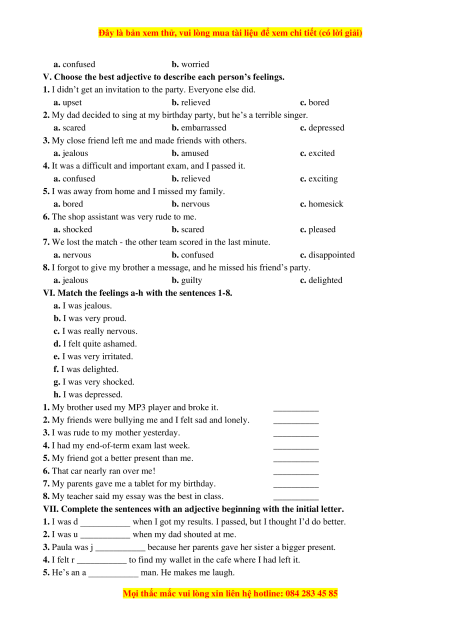 8. I forgot to give my brother a message, and he missed his friend’s party. a. jealous b. guilty c. delighted