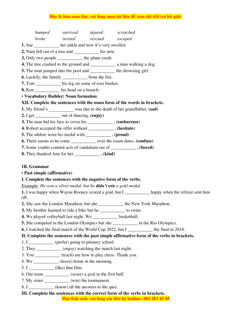 8. They thanked Ann for her ___________ . (kind) 1B. Grammar